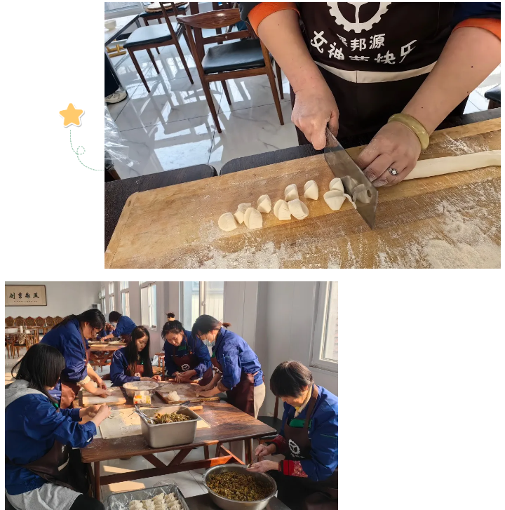 包餃子作為中國傳統的手藝,不僅是一種技巧,更是一種團結合作的象征。活動現場,歡聲笑語,其樂融融,大家圍坐在一起,揉面、搟皮、包餃子,分工明確、配合默契。